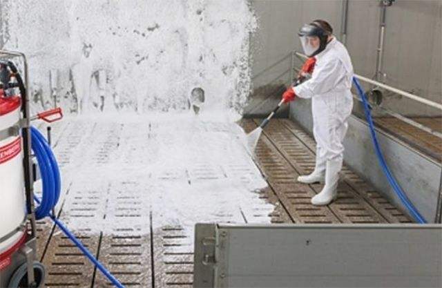 12. 經常保持豬舍、生產區和生活區的環境衛生,及時清理污染物,并選用低溫下有效的消毒藥,定時噴霧消毒。重點加強裝豬臺的消毒,因為這是疾病進入豬場的重要通道。