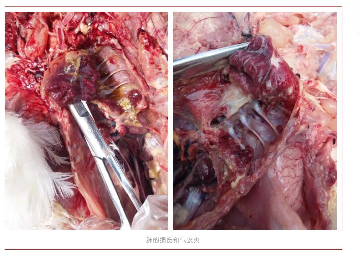 · 常見病原體如支原體、大腸桿菌、流感H9、傳支病毒等常常引起肺損傷。特別是支原體,被稱做底色病,既能垂直傳播,又能水平傳播,大腸桿菌常與它相伴而生。新城疫、傳支的疫苗反應能促進它的感染,易發生嚴重的氣囊炎,引起肺感染壞死。