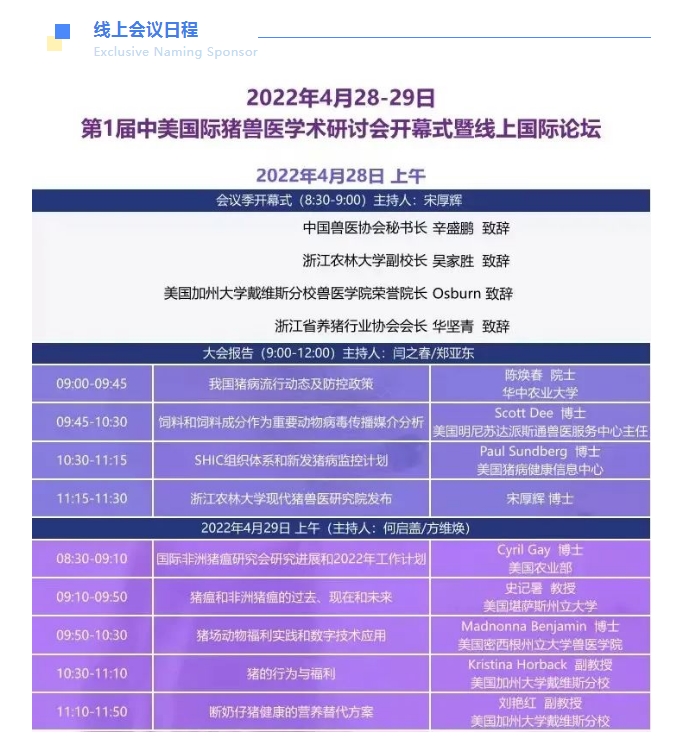 會議主辦方浙江農林大學特邀山東華辰制藥有限公司為聯(lián)合主辦方,同時邀請到了公司技術總監(jiān)匡寶曉博士作為第1屆中美國際豬獸醫(yī)學術研討會線下論壇的演講嘉賓。