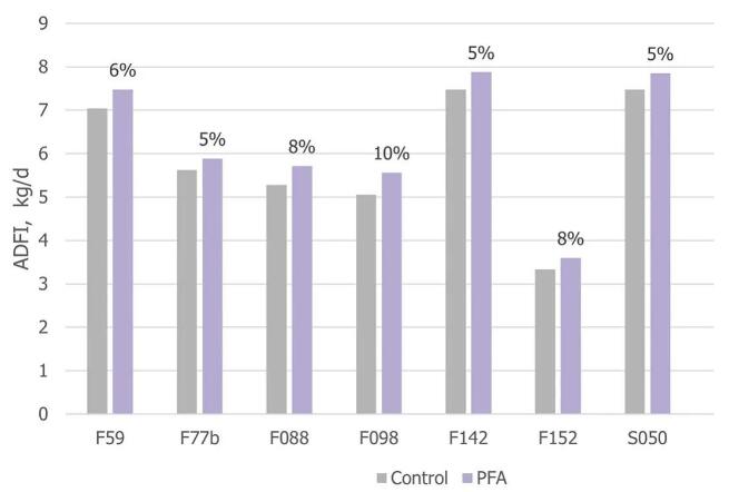 圖1. 對泌乳母豬日采食量的影響(7個試驗)
